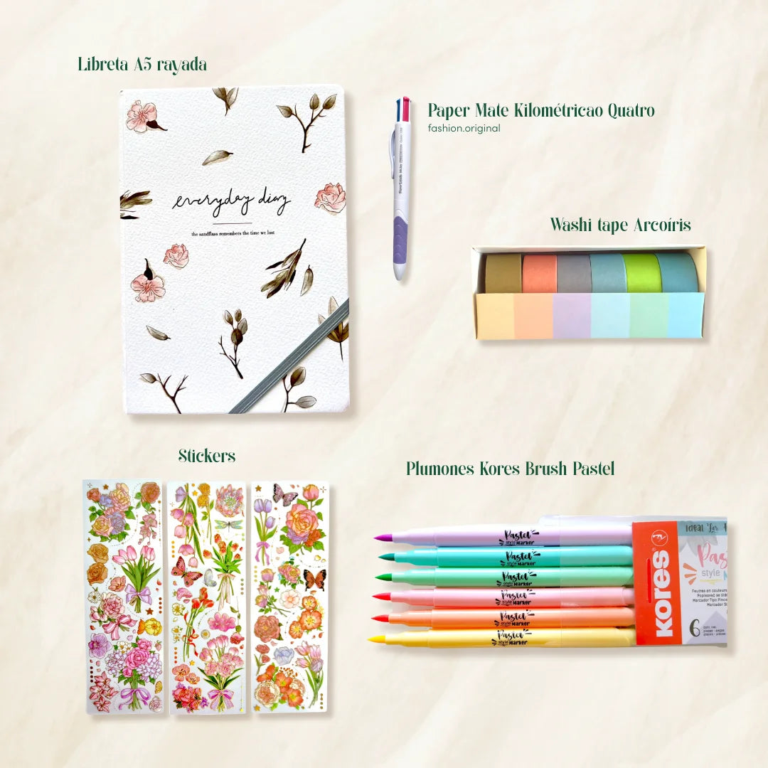 Glow & Flow es el kit ideal para mujeres que conquistan su día con elegancia, organización y un toque creativo. Incluye papelería funcional y hermosa para acompañarte en cada reunión, planeación o idea brillante que necesite bajarse al papel. Porque sí se puede tener productividad con estilo. Este combo no solo organiza tu semana: eleva tu escritorio, tu vibra y tu confianza. Perfecto para tu oficina, tu journal o ese espacio tuyo donde se encienden tus ideas. Fluye, brilla y escribe bonito.